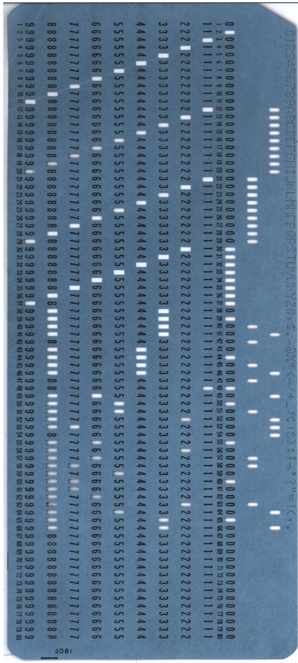 Punch card as data storage. Used in 1890 United States Census. Eventually became the core of IBM
