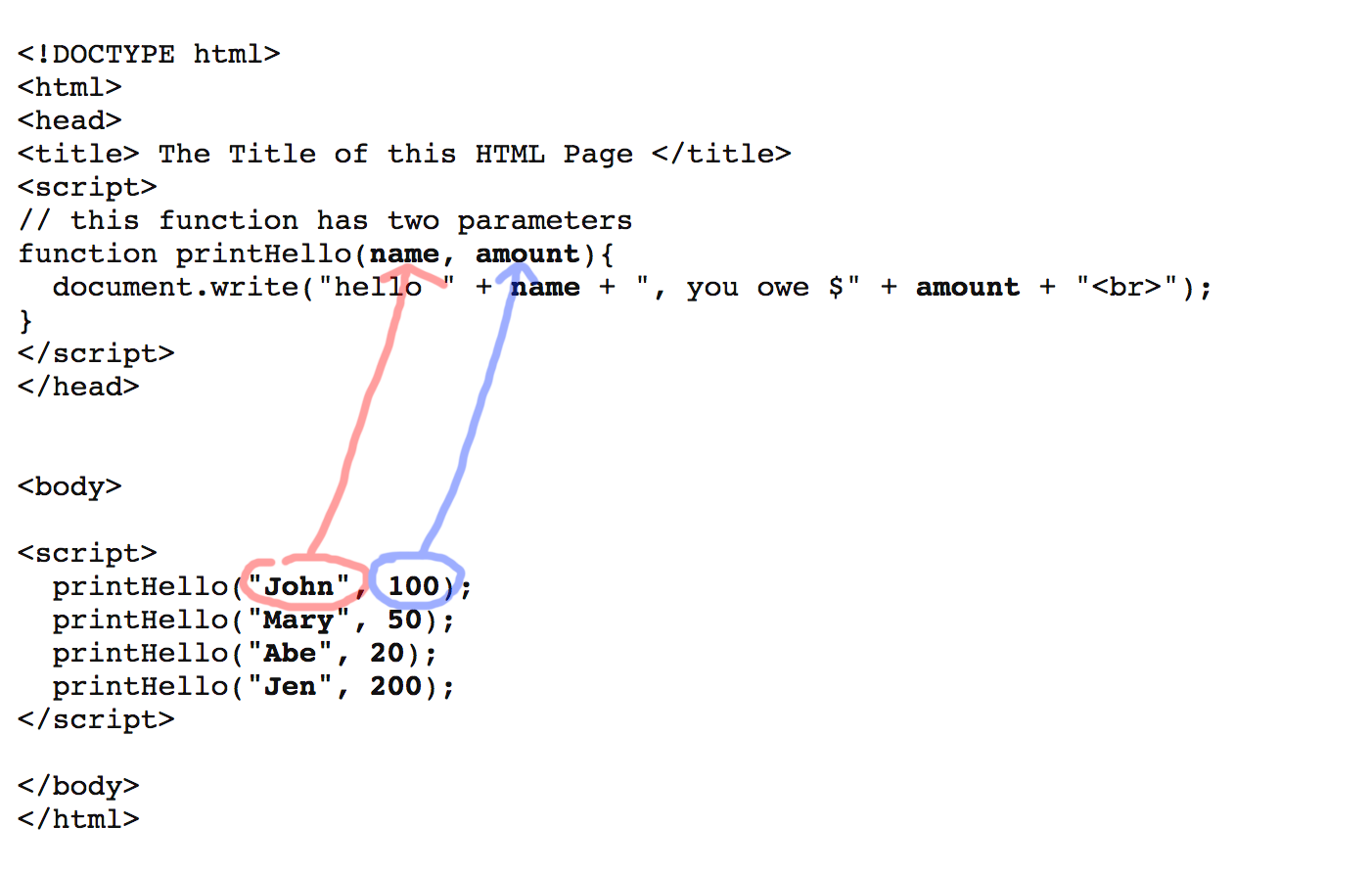 function functionName(argument1, argument2) {