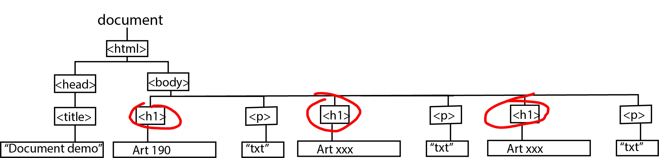 var courses = document.querySelectorAll("h1");