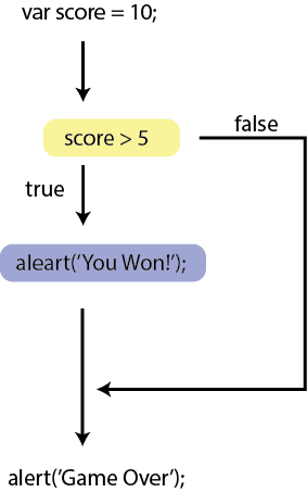 The default behaviour of javascript is to interpret the code from the top to bottom. This isn't all that useful unless you can deterministically write everything