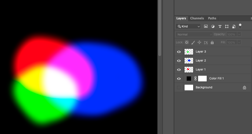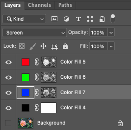 Turn the blending mode of the red, green, blue solid color layer to "screen"