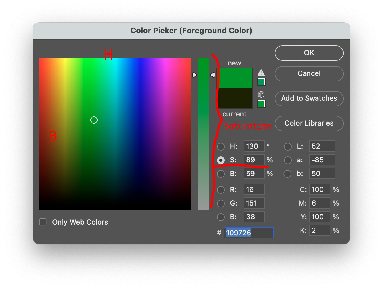 Color picker Hue/Sat tool