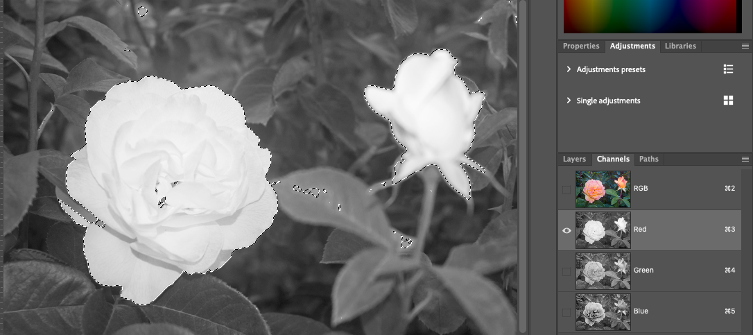Click and choose one channel to isolate r or g or b