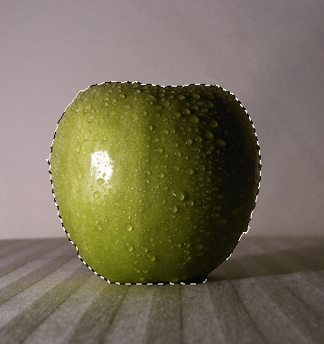 Marching ants only encircle the pixels you are selecting more than 50%. But in fact, you are selecting ALL based on intensity.