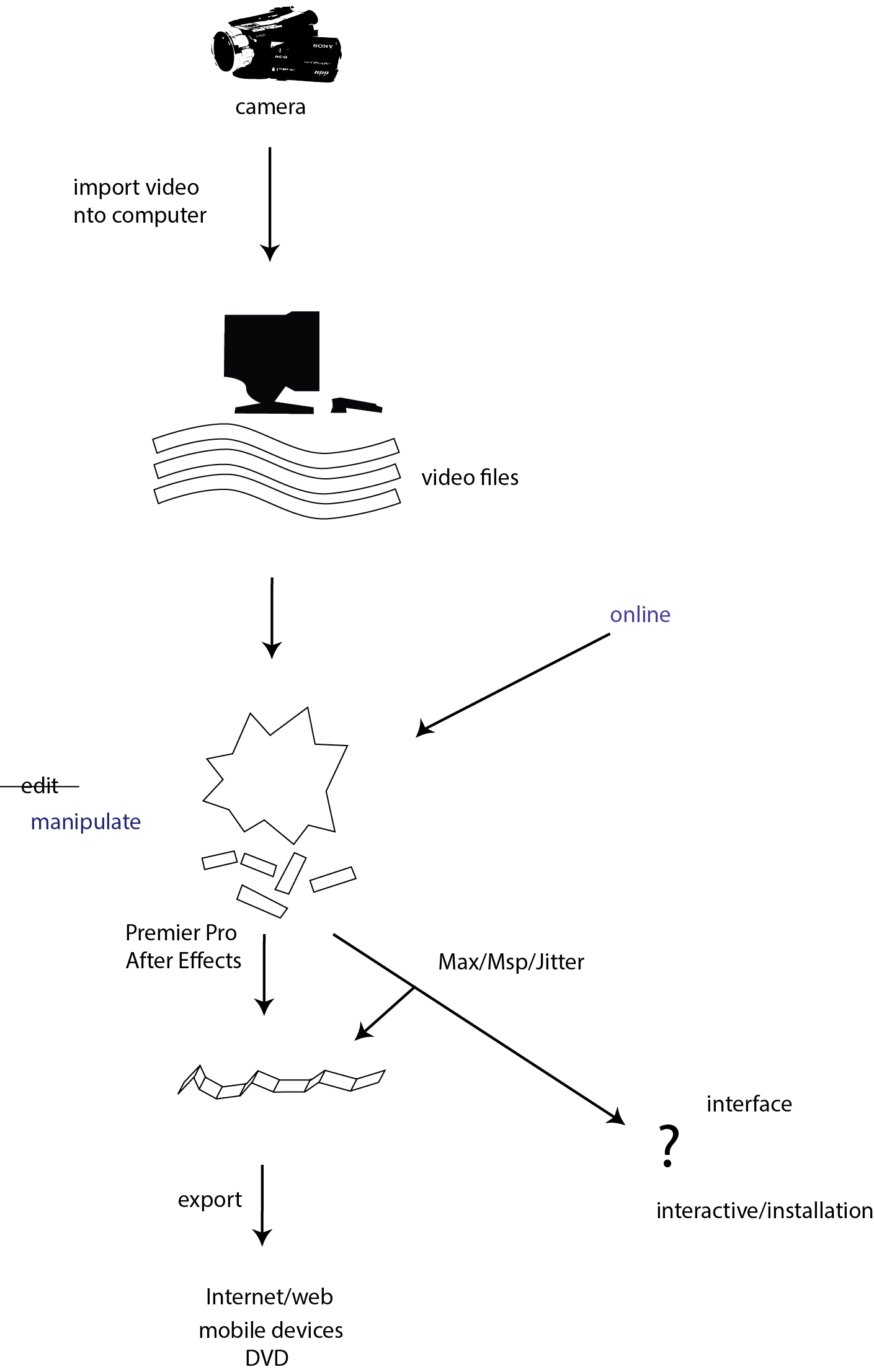 Adobe Premier (the video editing software we will use) shows us video data in a certain way influenced by film. When we use Premier, it is hard not to think about film.
