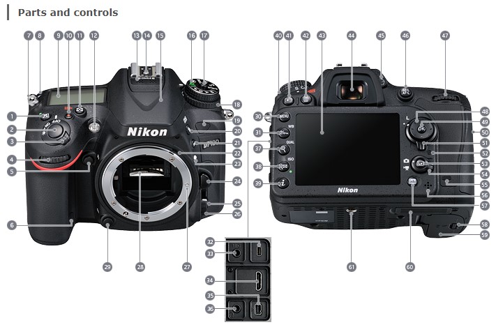 - To turn a Nikon DSLR into a video camera, turn #54 (Live view selector) dial to video and press the #53 (Live view button)