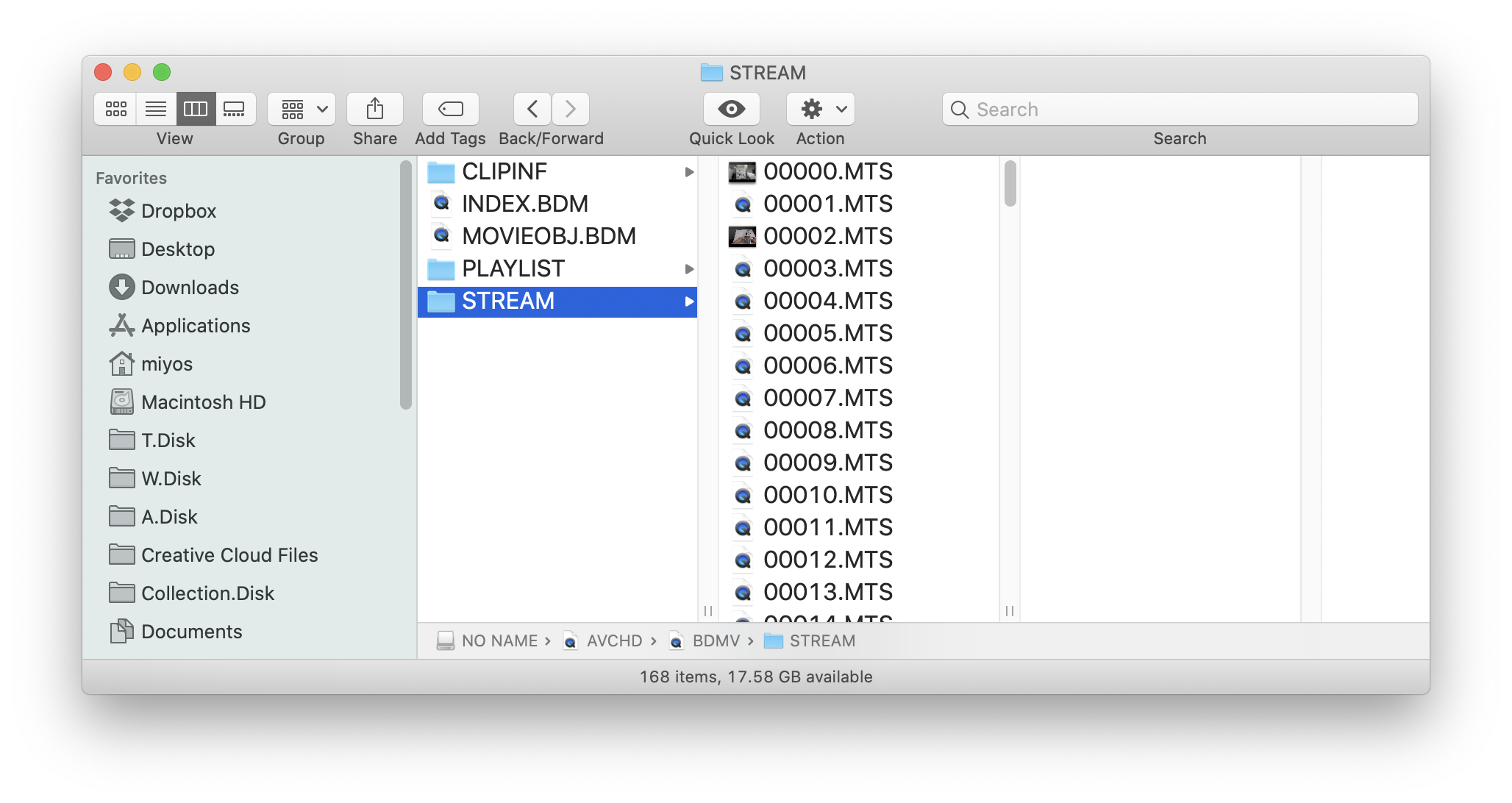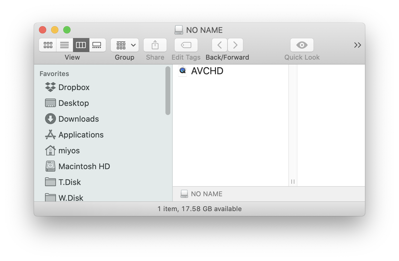 Select the drive "NO NAME" (or Untitled). Go inside AVCHD (which may be inside