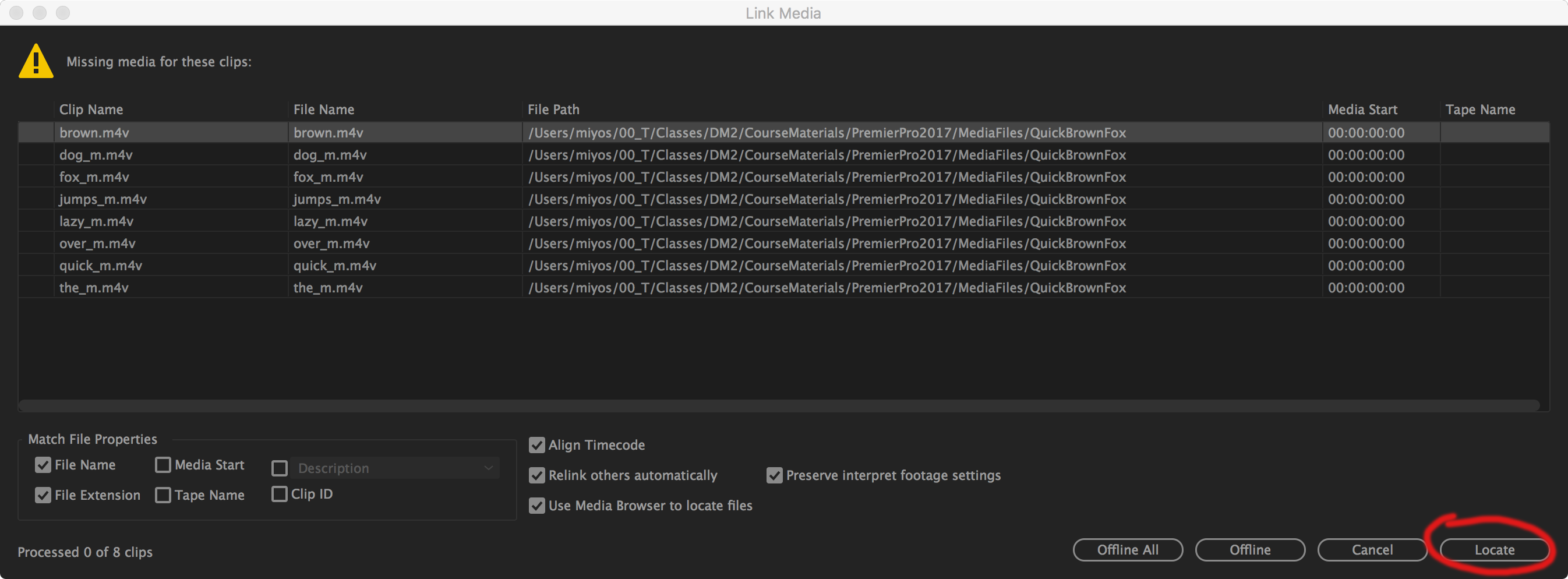 If the link between the media file and your project file is broken, a panel like this will show up.