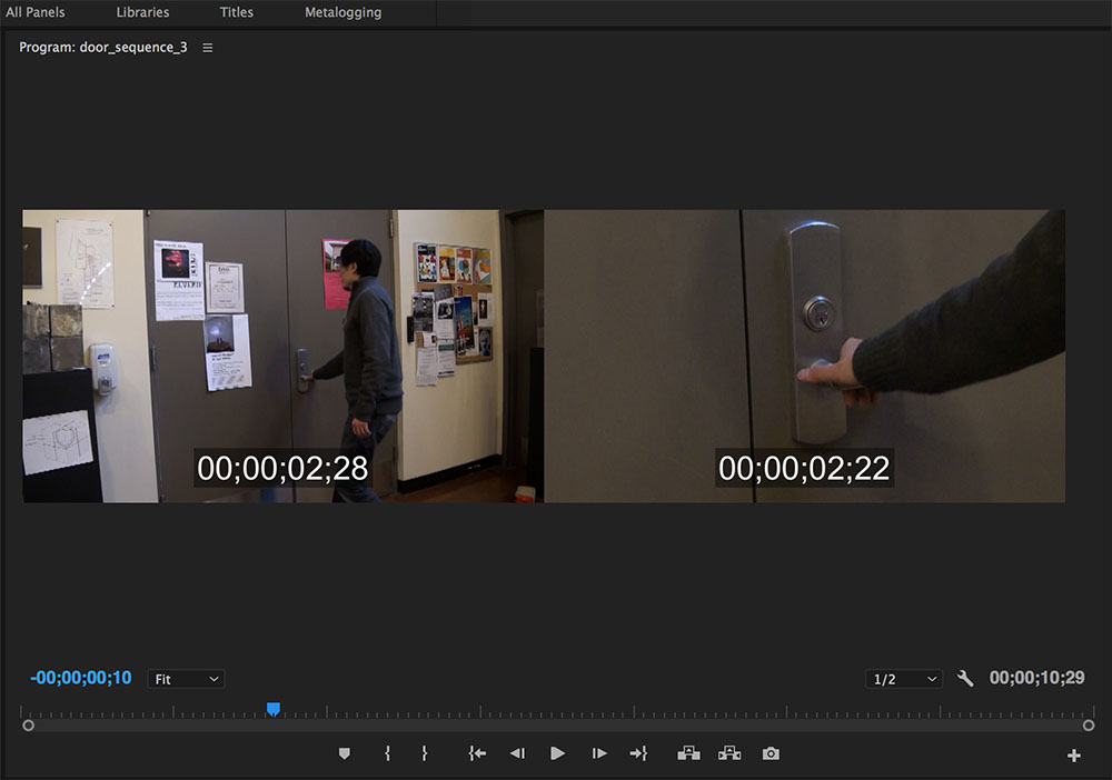 : trims the Out point of one clip and the In point of the following clip simultaneously.