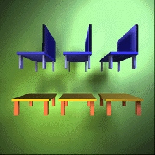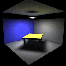 These pictures were rendered with a program I wrote for 15-463 Computer Graphics II class taught by Prof. Paul Heckbert. The renderer uses radiosity algorithm. Check out the soft shadows casted by the objects. In radiosity you get these shadows for free! |
